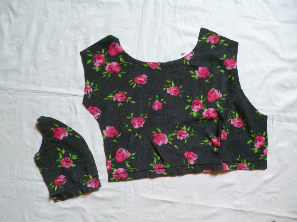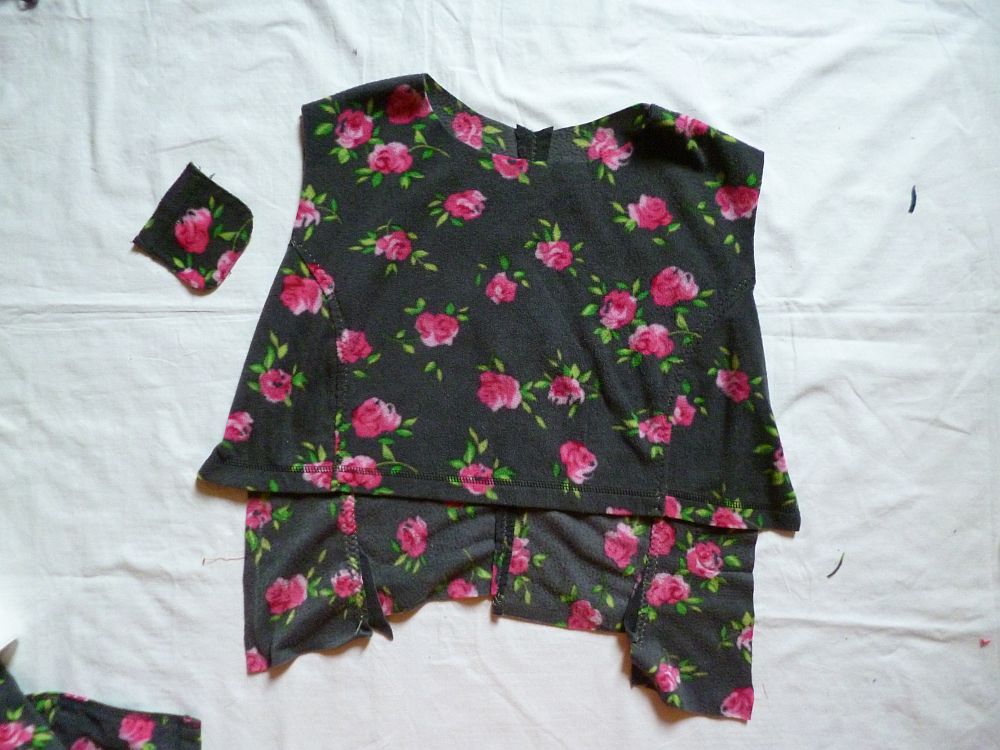 Kivágtam az eleje darabjait, (az oldalrészeket a pizsifelső elejéből), összevarrtam.