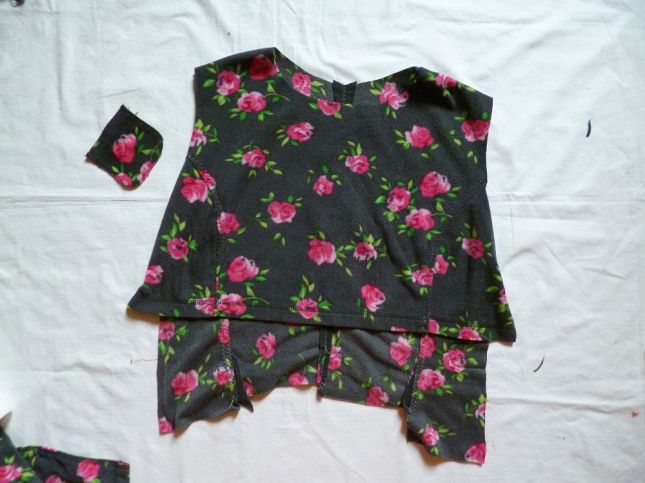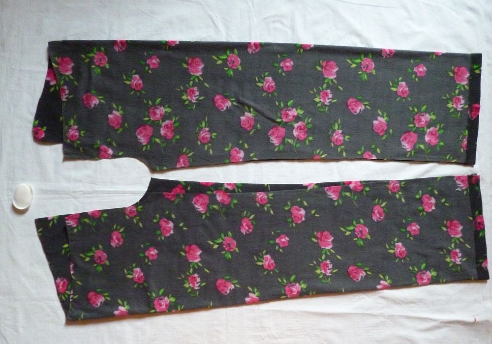 A tervem az volt, hogy a szárak aljából afféle paneleket fogok készíteni a ruhaalj elejére meg hátuljára, és le is nyírtam szépen a felső fücköket róluk,