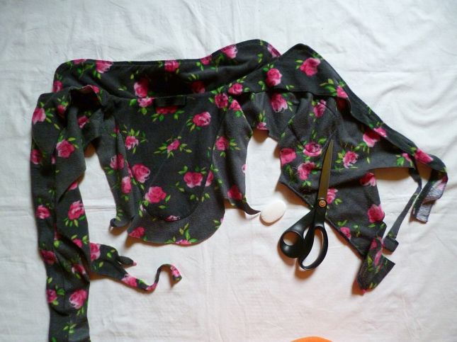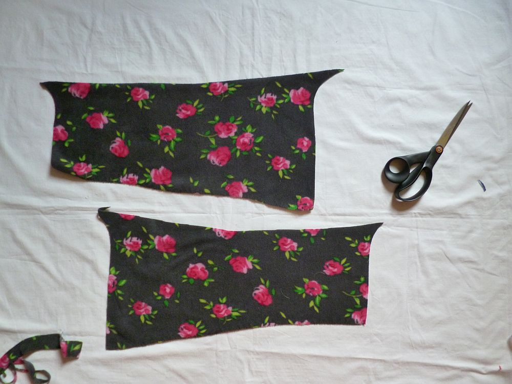 ezekből meg éppen kijött a ruhafelső hátuljának középső két része. A két szélsőhöz addig forgattam a pizsifelsőt, amíg sikerült azokat is kiszabni belőle.