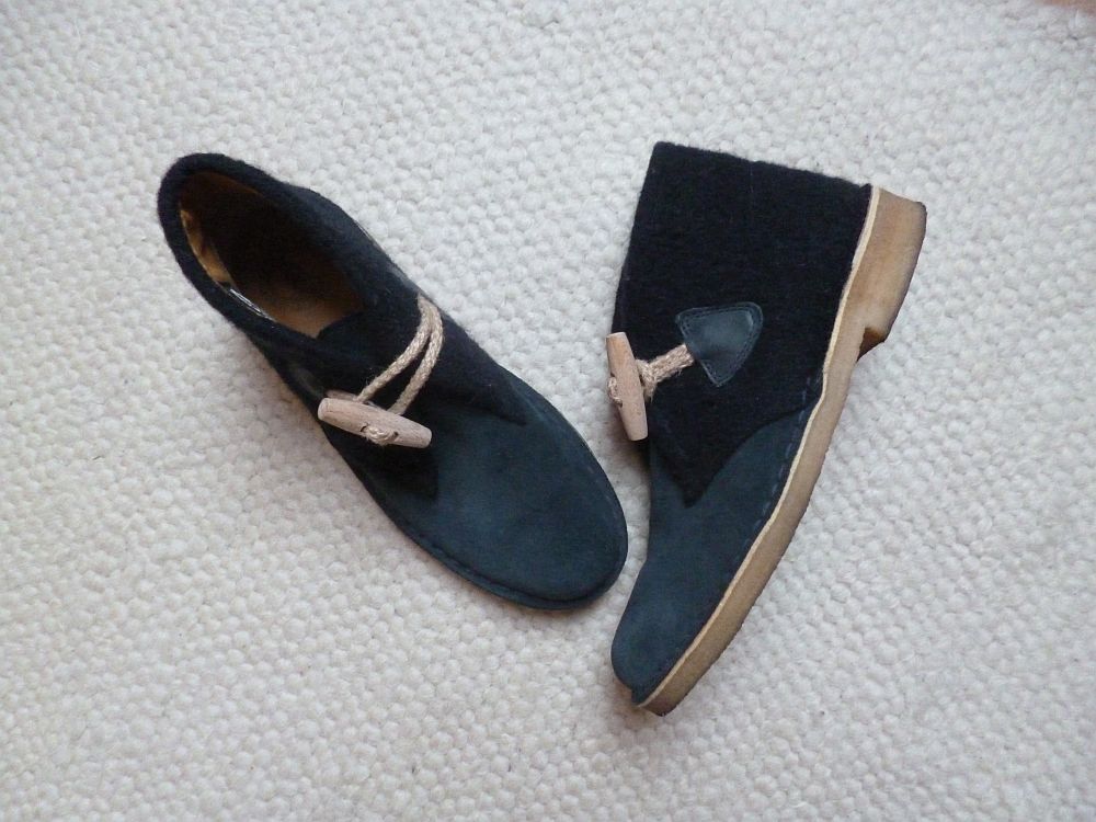 Imááádom. Egy 2013-as Clarks&Gloverall koprodukció eredménye, az eleje hasítottbőr, a hátulja bolyhos kabátlóden, teljesen hordatlannak látszik, az eredeti ár negyedébe fájt, és mindenestől meg van húzatva. (Azok a gombolók!) Sőt, még egy cetli is van benne, amire ráírhatom a nevem, rangjelzésem meg a vércsoportom, nesze neked desert boot.