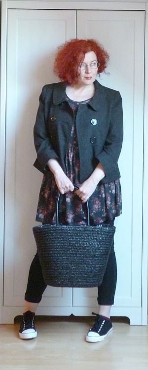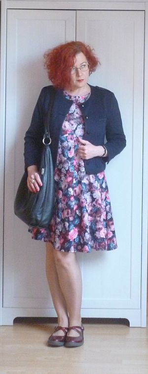 A hátborsókhoz (eredeti ötlet) felvettem azt a rózsás ruhámat, ami, az a gyanúm, a blogolvasókkal szembeni restanciáim kategóriájába esik. Szerintem ezt ti még nem is láttátok, és arra ugyan pontosan emlékszem, hol turkáltam (az esztergomi Háda volt az), de arról már lövésem sincs, mikor.