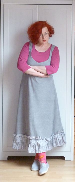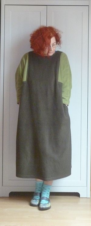 Mint tudjuk (tudjuk, ugye?), én roppantul szeretem a kötényruhákat. Általában magamnak varrom, de néha turkálok is. Emellett időnként kedvem támad megmenteni olyan turkálós darabokat, amiket úgyse fog elvinni senki, mert olyan csúnyuskák, formátlanok, esetleg még hibásak is.