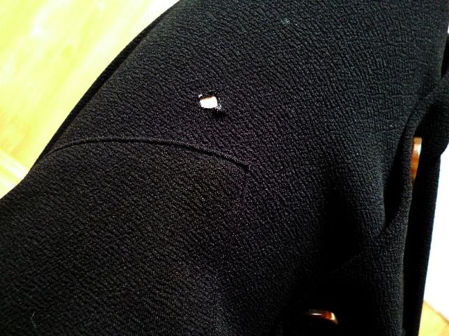 és a zsebe alatt van rajta elöl egy eeeekkora kiégetett lyuk.