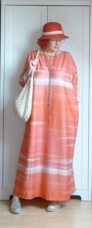 A csüngü, az aranycipő meg a kalap leginkább azért kellett, hogy ne teljesen úgy fessek, mint aki hálóingben van, de őszintén, már ez is tökmindegy. Még el sem hagytam a lakást, de már rosszul vagyok a hőségtől, és muszáj a kilences busszal elmennem, mert másként nem érek be tizenegyre. Esett volna rám a plafon, amikor ezt elvállaltam.