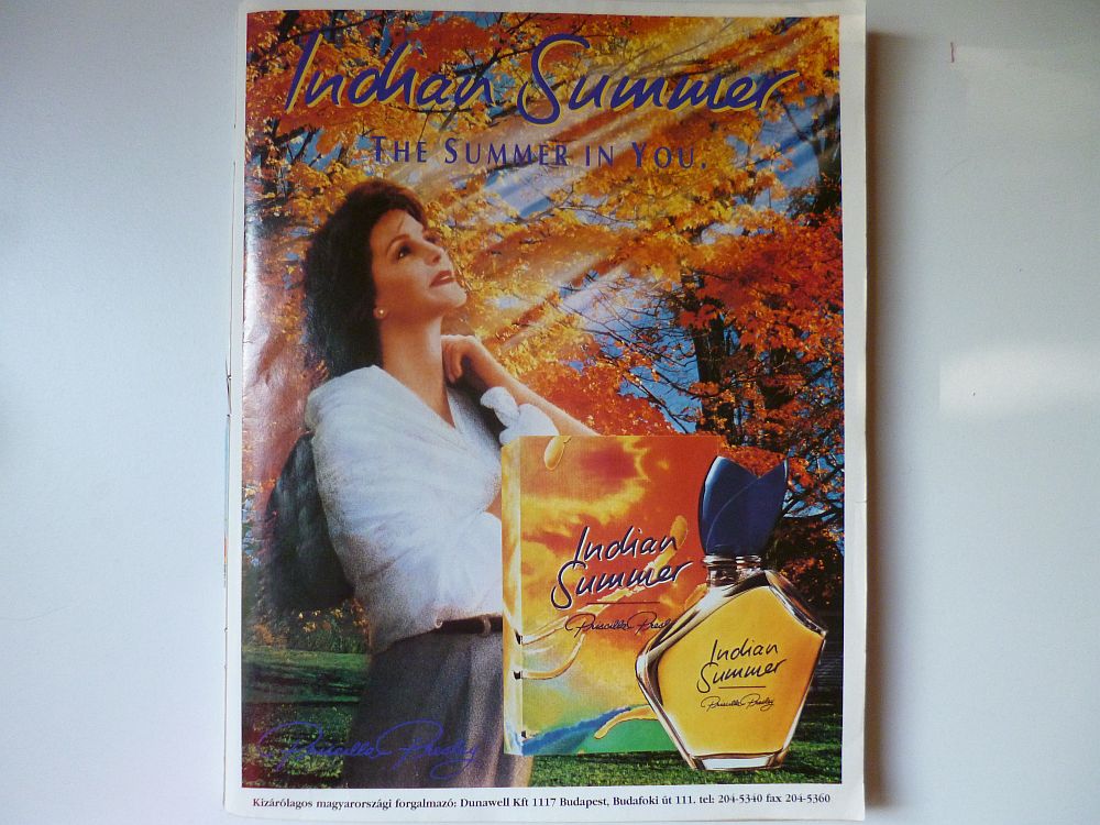 Summa summárum, most már végre elég öregnek érzem magam az Indián Nyárhoz, de az Indián Nyár azóta, huss, kiment a divatból meg a forgalomból. Priscilla Presley a fenti reklámfotón még nálam is fiatalabb, de artisztikusan ki van blőrözve, hogy ne mutassa a korát, mostanra pedig olyannyira gumikacsává műttette magát, hogy nyomokban sem emlékeztet önmagára.