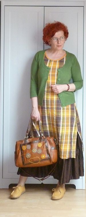 Tipikus vis maior-öltözék lett a mai napra, mert én ugyan eredetileg más cuccokkal akartam felvenni a kockás ruhámat, viszont öt negyvenkor kiderült, hogy nem mennek alá más cuccok, sőt még én is aligéppen férek alája. Fogalmam sincs, mi a rosseb történt, egyetlen kilóval nyomok többet, mint amikor megvarrtam ezt a dögöt, most mégis rettentő szűk mellben, muszáj vele kezdenem majd valamit.
