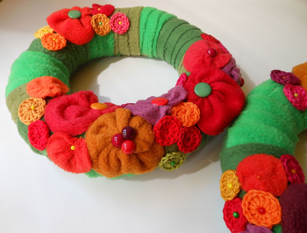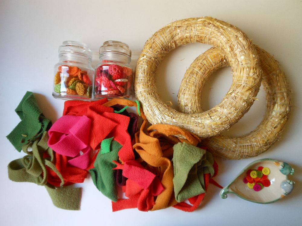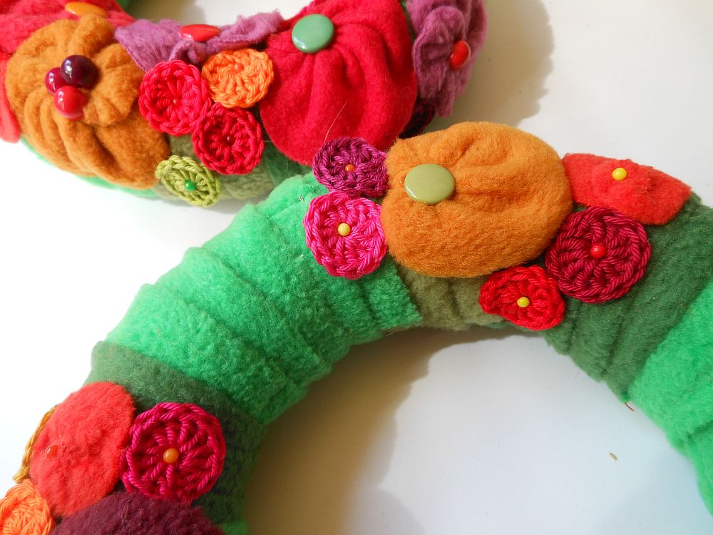 Arra, hogy mit hogyan csináltam, persze ezúttal sincs pontos recept, az embernek a saját színérzékére (höhö) és esztétikai érzékére (HÖHÖHÖHÖ) érdemes bazíroznia. Előbb felmennek a koszorúra a nagyobb darabok, aztán a közöket kitöltögetni az összes többi, és egyszer, amikor már szikrázik a tarkabarkáktól az ember szeme, azt kell mondani, hogy stop.