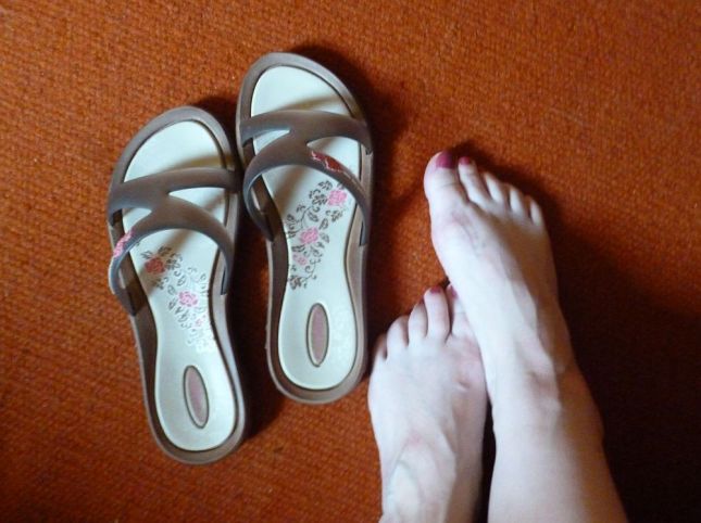 Mint például ezen a meglepően kecses brazil gumipapucson bévül a rózsaminta. Gondoltam, megmutatom.