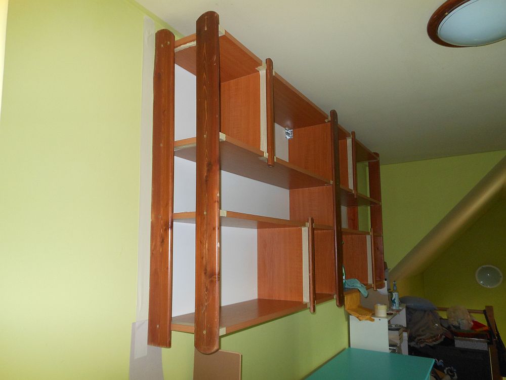 A cél az volt, hogy ami igazi fa, azt lefestem, a laminát meg marad úgy, ahogy volt. Tehát gyakorlatilag a frontokon meg az oldalakon található léceket kellett lekennem.