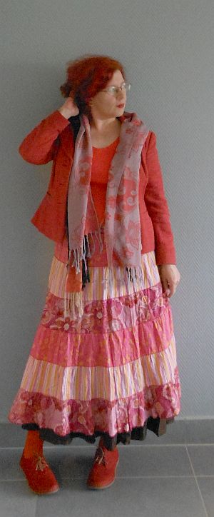 Ez igazán remek hippiasszony, pont ilyen mehh időhöz való! 🙂 Ez a szoknya nekünk is megvan valahol, szintén turkálóból, de azért vettük meg, hogy szétvágjuk, és foltos takarót varrjunk belőle. 😀 Csak még nem került sorra… 😀