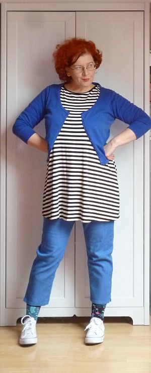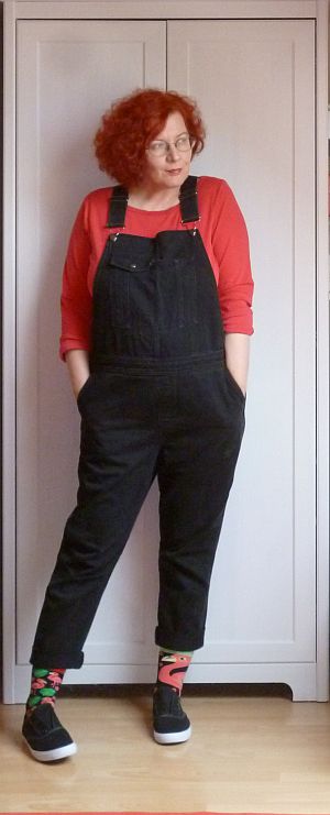 Mint látható, szorgosan dolgozom új ruhadarabjaim beüzemelésén. Ideje volt, az elmúlt napokat pizsiben meg nyafogóruhában ténferegtem végig. Mint nem látható, de feltételezhető: terveim az őszi szünetre számosak, ambícióim pedig nagyívűek, például minden nap akarok varrni valamit. (Ez persze majd vagy összejön, vagy nem, de egyelőre optimista vagyok. Tessék éngemet támogatni!)