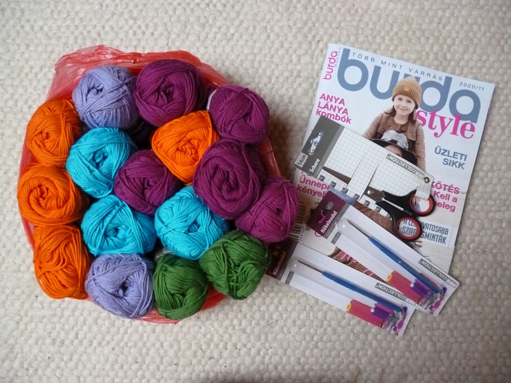A horgolófonalak, tekintetes bíróság, muszájosak voltak. Talán emlékeztek még rá (egy frászt emlékeztek), hogy tavasszal-nyáron milyen pusztítást végeztem a készletben. Azt azóta sem sikerült pótolni, de most egy kicsikét igen, hála néked, Euroshop.