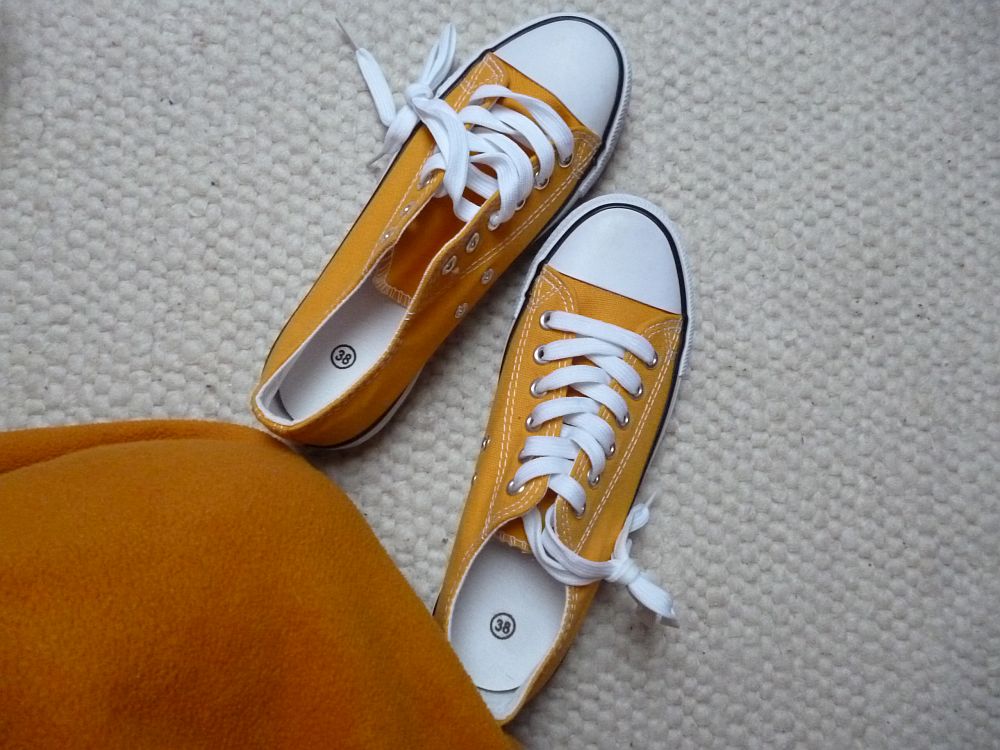 Mivel úgyse mocorgok sokat odakint, vettem egy bentimocorgós tornacipőt, mert ilyen színben még nem volt. Ha megérjük, jövőre majd odakint mocorgok benne. Addig is, nédda, milyen szépen harmonizál a sárga nyafogóruhámmal.