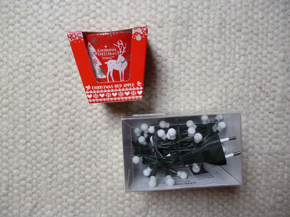 Na és persze az évszak nyomorúságait kivédendő kellett valami, ami fényes meg illatos, úgyhogy gyerünk, fényfüzér meg illatgyertya. Ez utóbbi ahogyan a lengyelek elképzelik a skandináv karácsonyt, tavaly már vettem ilyet, és szerintem elég jó elképzelés.