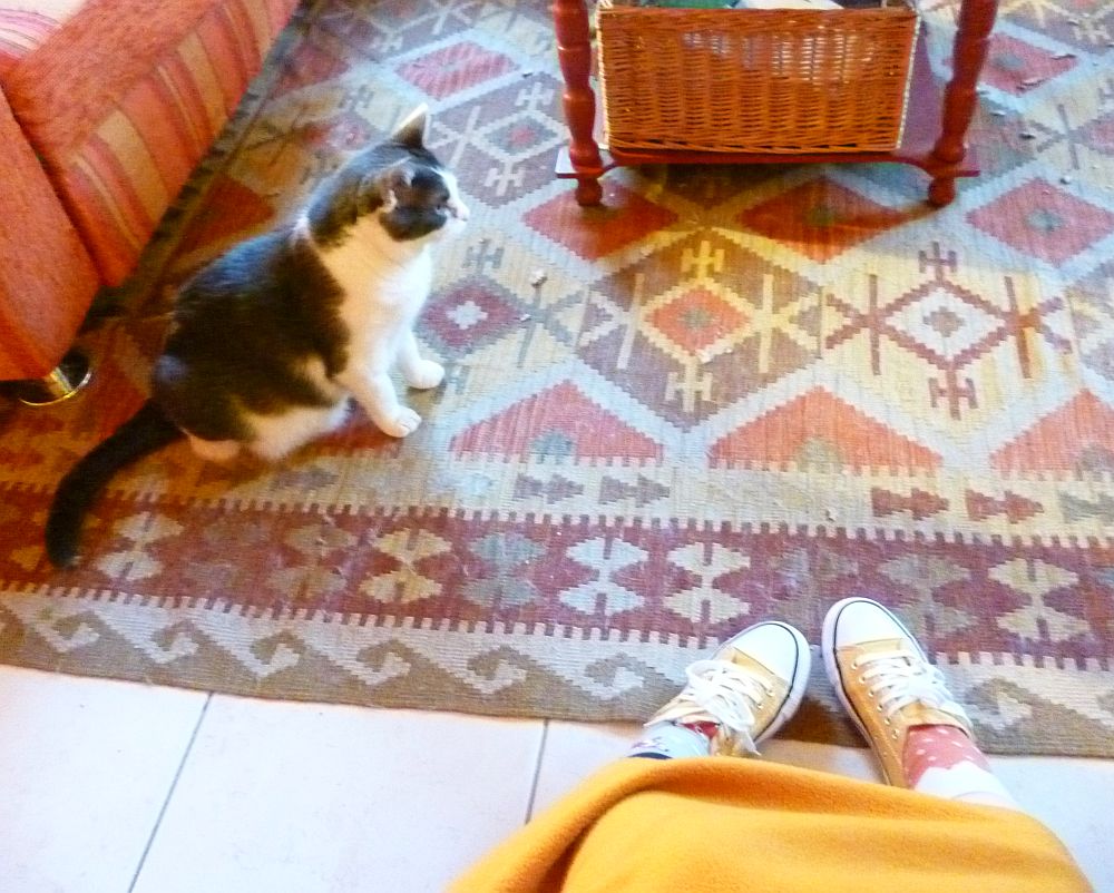 Épp ma egy éve, hogy délutáni álmomból a Repülő Kutató azzal ébresztett: “Drágám, találtam egy macskát a teraszon, most a mosókonyhában van”. Az első feladat az volt, hogy leellenőrizzem, mennyire az ő vagy az én fantáziám terméke ez az egész.* Természetesen ez a macska ezúttal igazi volt, ott ácsorgott a mosókonyhában, dorombolt, a fülén egy a mosógép mögül rákerült pösz, és én már akkor sejtettem, hogy a nyakunkon marad.