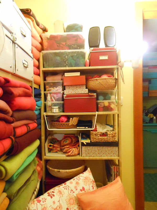 Poci alatt az a piros anyag, az kéne most nekem, hogy befejezzem a Kabátfalvédőt. (Igen, ez a neve, majd elmondom, miért.)