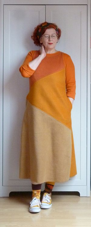 Ma megest konzultációt tartok az érdeklődők számára – nyilván a gyivákok is “haggyábékén” állapotban vannak, de a szabál az szabál. Ennek tiszteletére felvettem egy olyan régi kötényruhát, amire ti már talán nem is emlékeztek. Ha zsebe is volna, maga lenne az ideális örökdarab. No, majd megpróbálok legyártani belőle egy replikát. Valamikor.