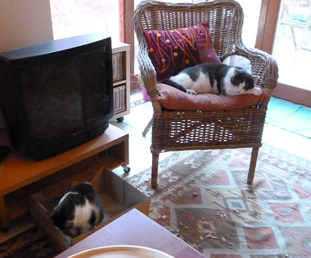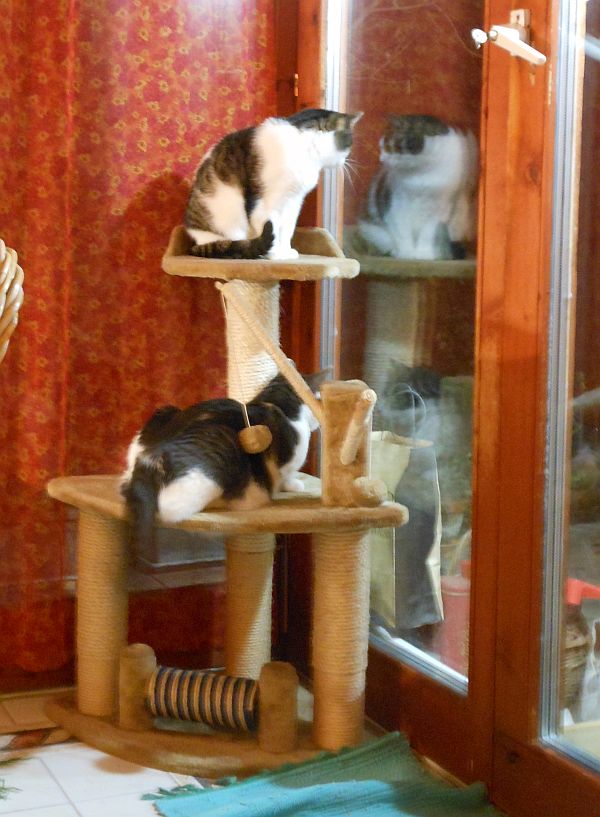 Macskai híreink ezúttal az “ellenségem ellensége a barátom” témakörben folynak, és igazán hálásak lehetünk Picurnak, aki továbbra is meg- megjelenik a teraszon sárga nyakörvecskéjében, bezabálja a vendégeknek félretett papit, valamint közös utálati alapot nyújt a mi szőrös terroristáinknak.