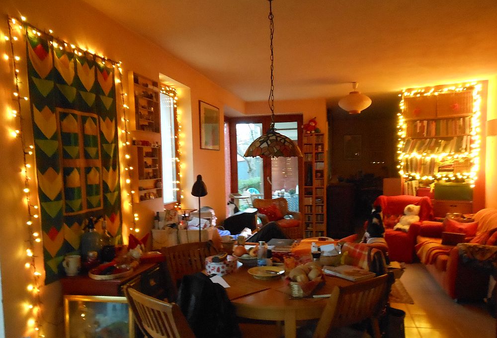 A lakásban még nem volt idő meg enerzsia nagyobb tatárdúlásra (különben is, a falvédő ügyében megkutyáltam magam, hogy addig nem cserélem le, amíg nincs kész az új, úgyhogy pesszimistább olvasatban ez jövőre is itt lesz a falon), de fellőttem a fényzet nagyját.