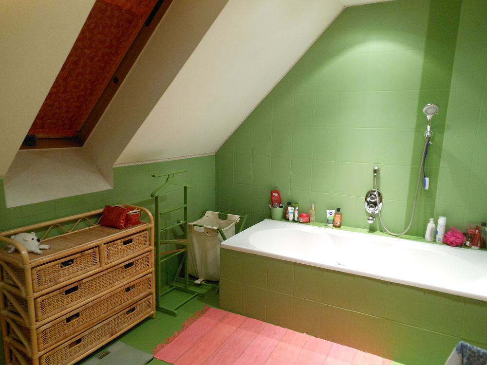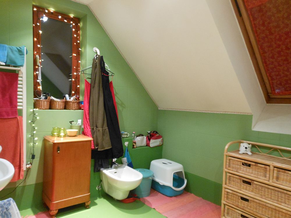 A komód meg a szennyestartó között a szobainas látható, amiről még februárban megérdeklődtem, szerintetek milyenre fessem, de aztán beütött a szopornyica meg minden, úgyhogy végül zöld lett, mint a padló.