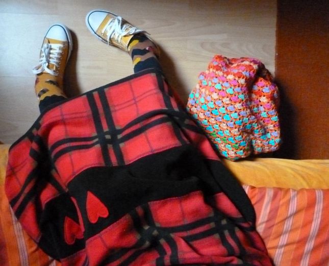 Hát így esett, hogy én fél egykor megint kivágtam az ablakon a francba egy poloskát, kiszedtem a cuccot a szárítóból, megfésültem Macit (napi száz húzás a fésűvel, ez az alapadag), megittam egy kávét, aztán leültem takarót horgolni, és hozzá fegyverkovács műsort néztem, amiben olyasmik hangzottak el, hogyaszongya “fegyverkovács és patkolókovács vagyok, emellett meg harmincöt éve hivatásos Télapó”.