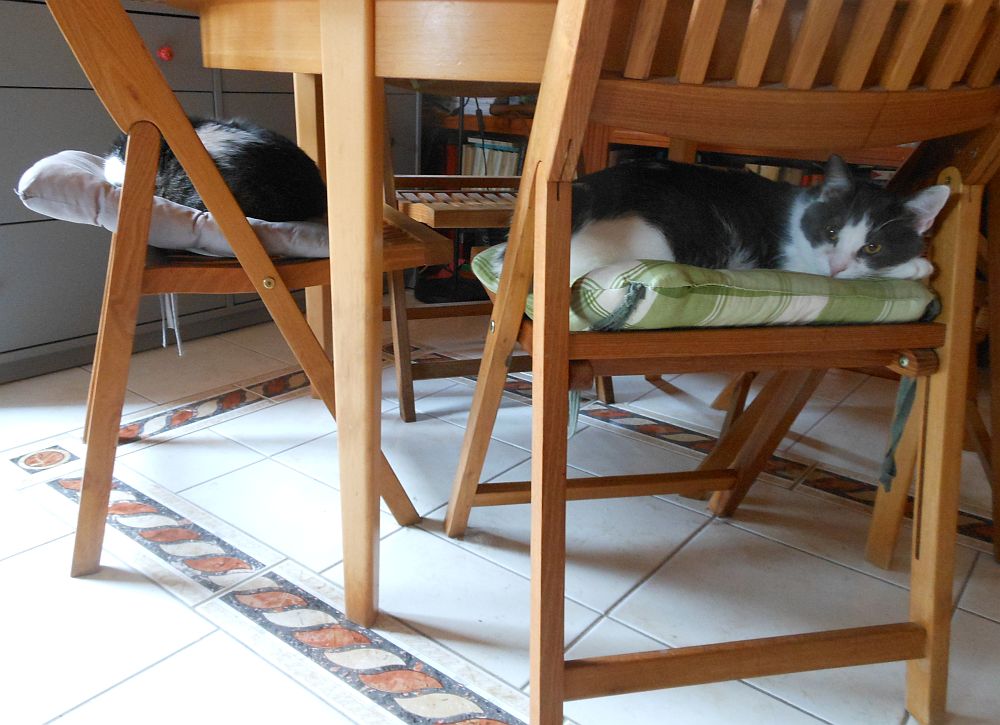 Mire megküzdöttem a vesszőkkel, elkezdett zuhogni a hó meg további feladatok, a szőrös dögök pedig elfoglalták méltó helyüket az étkezőasztalnál, hogy reggelizni se lehessen leülni,