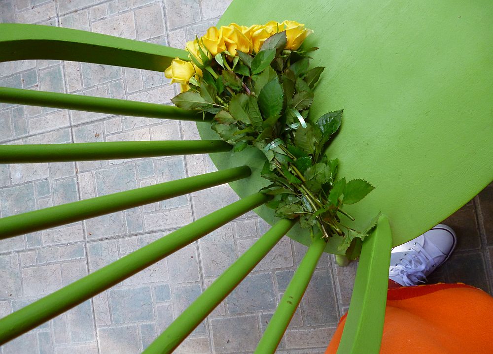 U.i.: Juteszembe, hadd dicsekszem el azzal, a férgyem micsoda nóbel úr, tegnap hozott nekem rózsákat a piacról. (Én oktatási elfoglaltság miatt nem tudtam lemenni.)