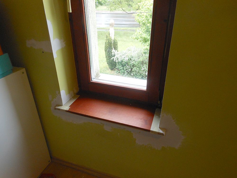 Nyilván nem ebből fogok megélni továbbra se, de azért erős büszkeség dagasztja kebelemet, milyen faszán sikerült a glettelés meg mélyalapozás meg izé. Ahhoz ugyan túl hülye voltam, hogy lefotózzam a “teljesen előtte” állapotot, de a kurva macskák a fellazult vakolattól fellelkesedve ezeket a darabokat vakarták ki a falból az ablakpárkány sarka alatt.