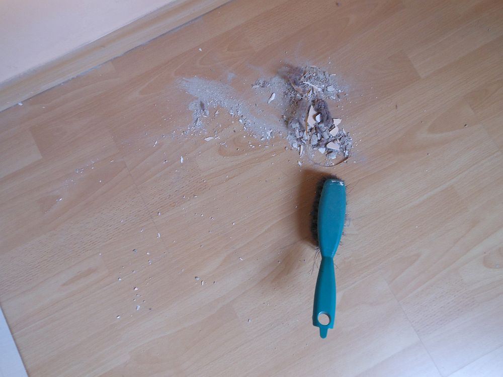 A tegnapi nap folyamán heroikus módon összevissza vuzigáltam a hálószobában mindent, majd az a rész jött, amiről azt mondja a használati utasítás, hogy “a fellazult vakolatdarabokat eltávolítjuk”.