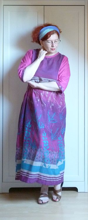 (Totál groggy vagyok – nem tudom, hogy ez még az oltás, már a hőhullám, esetleg középen a nagyrészt álmatlanul töltött éjszakám, melynek megkoronázásaként végül visszaszundikáltam fél hatkor, és olyan vadakat álmodtam, hogy abból simán kijönne egy gothic novel. Ehhez képest ezen a fotón egészen megtévesztően katzér vagyok és életteli. Amúgy ez az a ruha, amit még valamikor márciusban vettem a piacon. Ilyet máskor is csinálok majd.)
