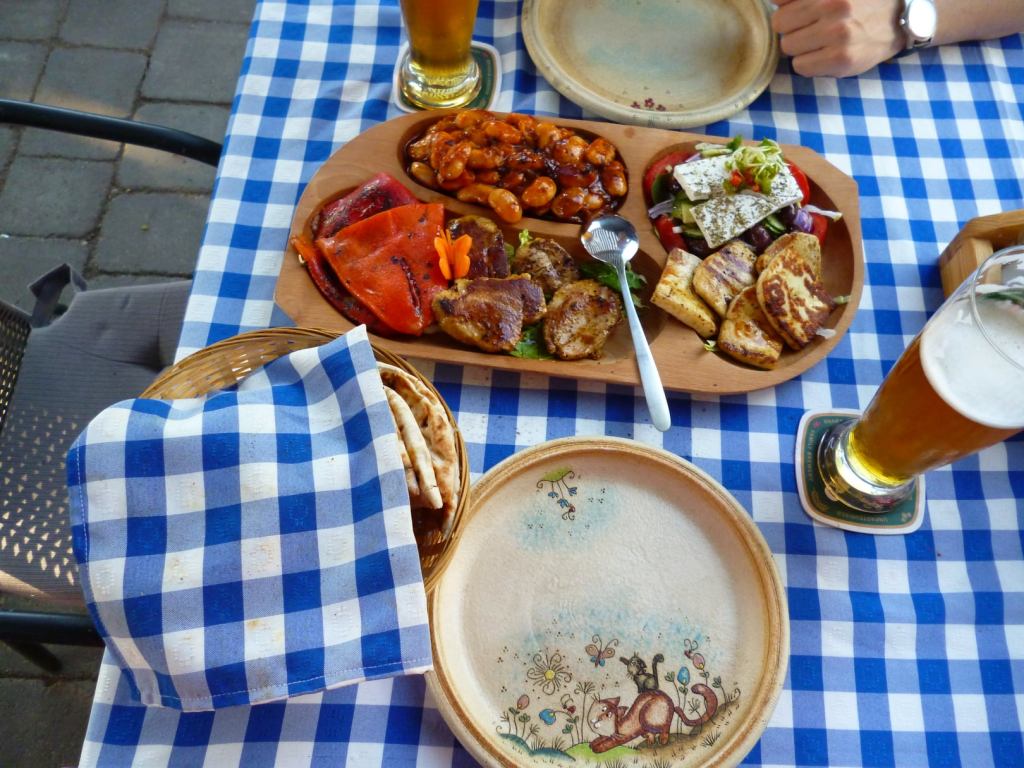 Képzeljetek még mellé egy kicsikis kéttenyérnyi pljeskavicát, az egy pöttyel később jött ki az asztalra. És, óó, nézzétek, mennyire nyár van, mik röpködnek be a florinis, a gigantes és a sertésszűz közé:
