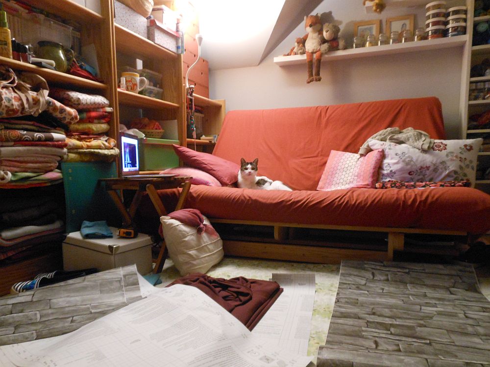 Újabb kismerénylet, ezúttal a hetek, desőt hónapok óta halogatott fajtából. Miután kifestettem a Bűnök Barlangját Ezüst Zsálya és Ezüst Cserje segítségével (aka Friss Cement és Másfajta Friss Cement), azt a szürke pépet fújták be a fejembe, hogy megpróbálom a szobát nyáron rózsaszínben, zöldben és szürkében, télen meg narancssárgában, bordóban és szürkében tartani. (Ez nyilván csak azokra a kiegészítőkre vonatkozik, amik huzatolhatók, a kupi többi része marad a már megszokott páviánsegg színű.)