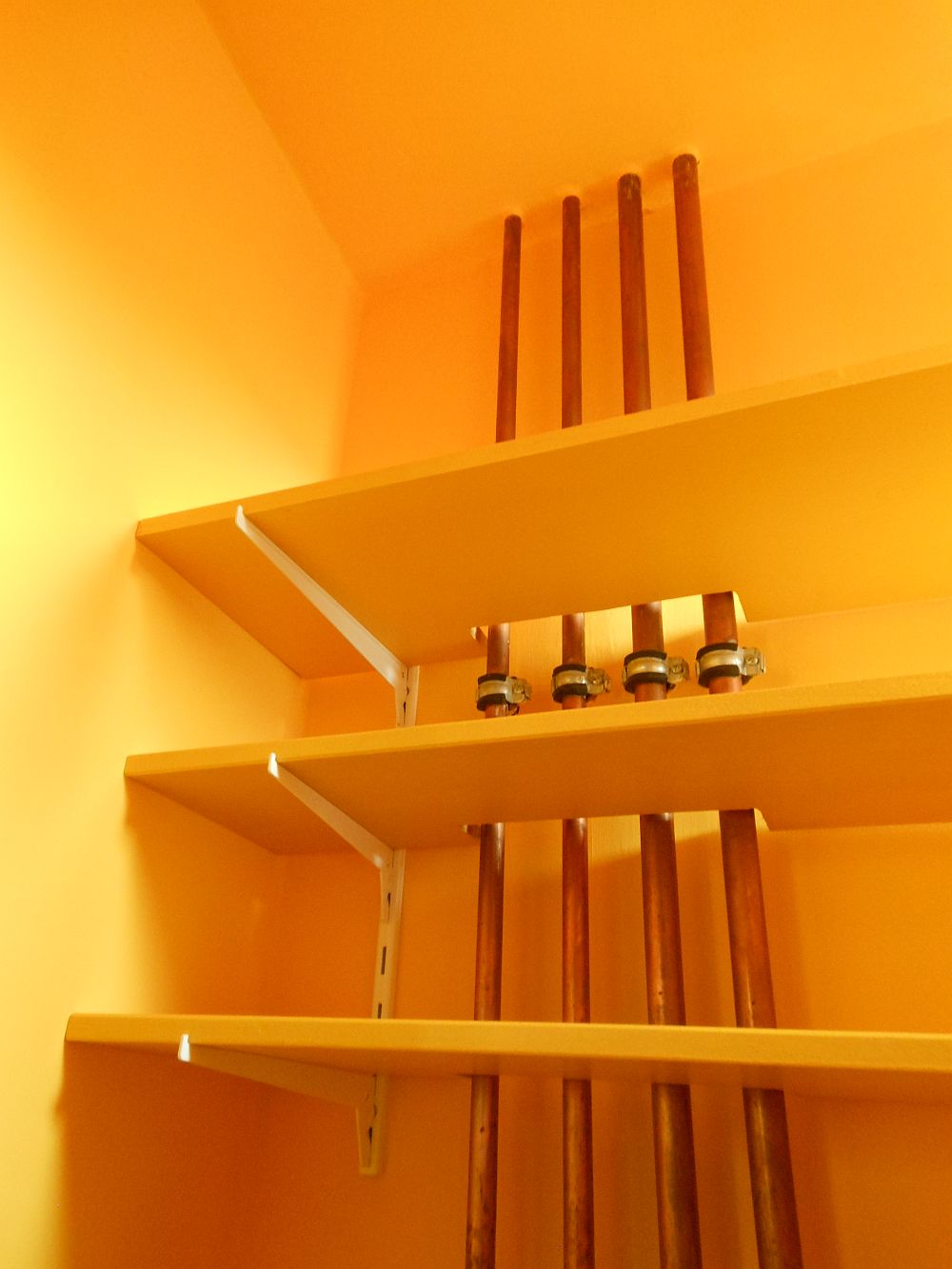 Szögezzük le: az, hogy “festem”, eufemizmus. Ez úgy nézett ki, hogy kipakolom, leszerelem, átsúrolom, glettelem, csiszolom, alapozom, maszkolom, lefestem, lemaszkolom, felpucolom, visszaszerelem. Mindezt tandemben a polcok renoválásával, ami úgy nézett ki, hogy letakarítom, leszedem, lemosom, újra lemosom, csiszolom egyszer, csiszolom kétszer, lefestem, lefestem, lefestem, lefestem (négy réteg van rajtuk), visszapakolom.