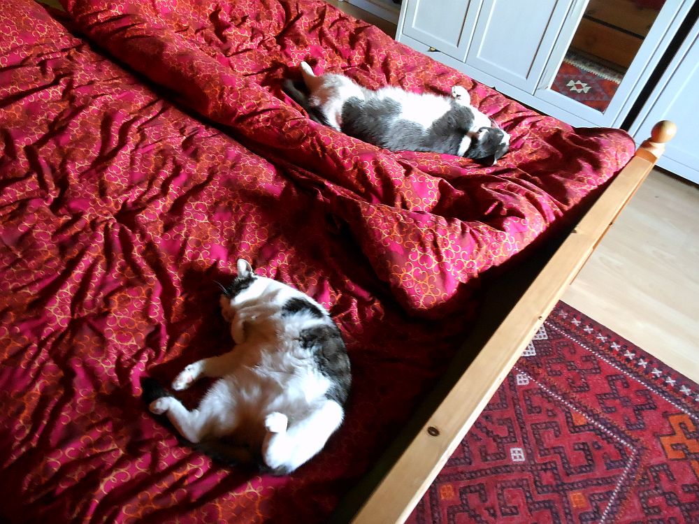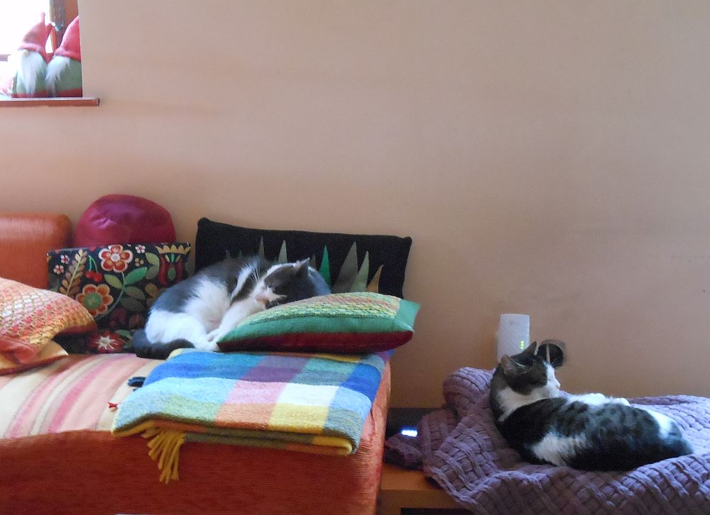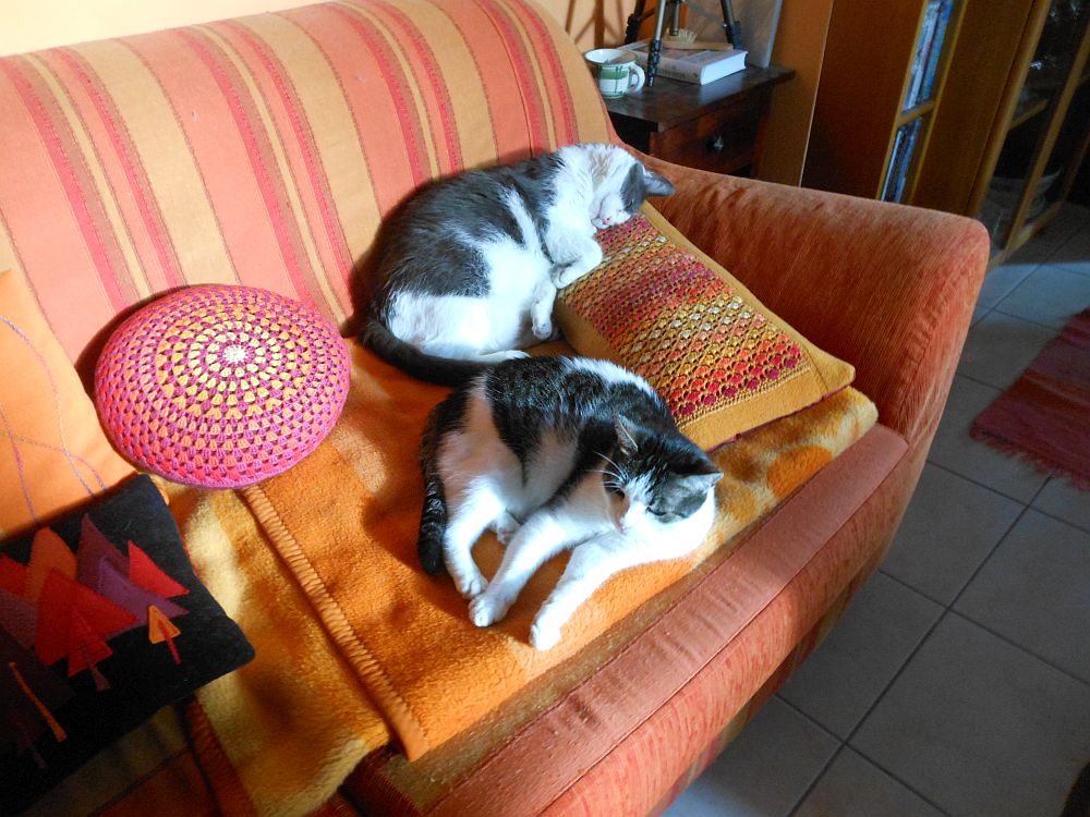 Ennek örömére viszont mostanáig már meg vannak etetve a macskák (kétszer), kimosva-megszárítva a rókás-sünis pokrócaink, és még a heti nagybevásárlást is megejtettük.