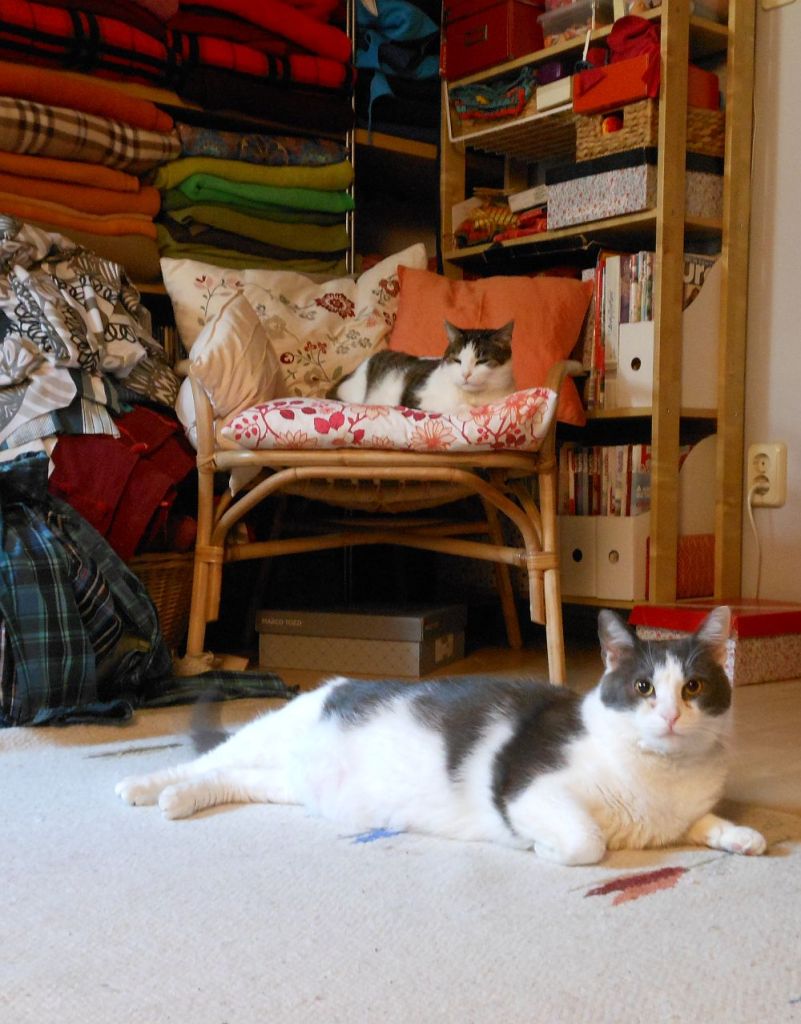 Én közismerten gonosz, szigorú és hajthatatlan macskamama vagyok, úgyhogy Poci már most utál, pedig hol van még a kontroll. Szóval az van most, hogy én a futonomon nyűglődöm kérdőívekkel meg írnivalókkal, Poci meg közben a pincében ül cipősdobozok alatt-mögött, seggét megátalkodottan a világ felé fordítva. Hülye ááállat.