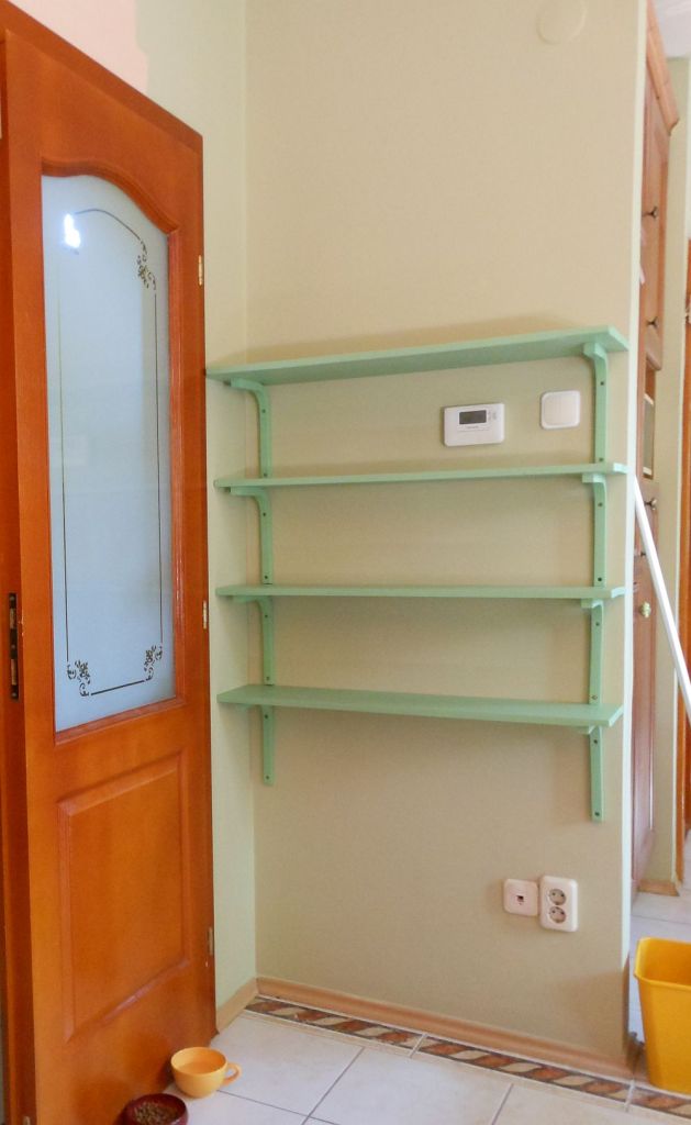 aztán miután lekaptam a polcokat a falról, és elvittem őket lefesteni, a fal pucolása, csiszolása, mélyalapozása, glettelése, újracsiszolása, újraalapozása majd festése után itt kötöttünk ki, ni: