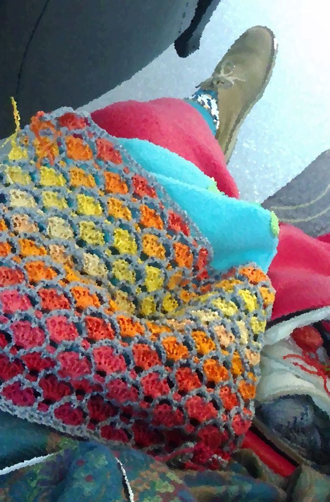 Úgy vágom a szántit, mint a zállat, ma még kétszer negyvenöt perc tancsim van, aztán hééétvége. Mondjuk megint (és még jó ideig) olyan nyühes sötét van reggel induláskor, hogy a mai napra Lénával készült, aztán olajfestményre effektezett képet kaptok, melynek ideiglenes címe “Horgolás és Volánbusz, valamint a kosárfonás művészete”. (A “valamint” utáni rész csak azért, hogy legyen benne valami meglepő.)