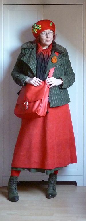 Ez voltam én ma reggel, már felöltözve, de még rúzs nélkül, mivel úgy gondoltam, hogy bemegyek a munkázóba, aztán ott majd felapplikálom magamnak, mielőtt édes bülbül szavakat mondok a nyílt napon.
