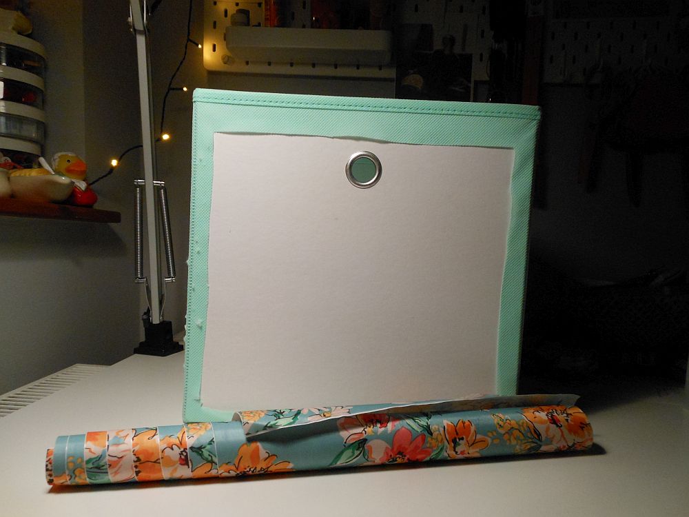 Megnyugtató módon azt a papírtörlő vastagságú és minőségű burkolatot, amibe beleszerelmesedtek a macskák (asszem, Maci volt a főkolompos) elég könnyen el lehetett távolítani a doboz megrongált oldaláról, és azt is tudtam, mivel akarom pótolni, merthogy valamikor szert tettem (szintén a lidliben vagy aldiban) egy adag ilyen öntapadós izére.