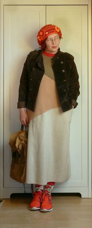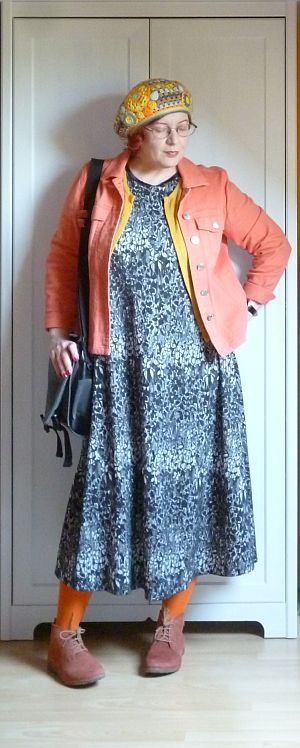 További híreink közé: tegnap írd és mondd három gépnyi lakástextilt mostam ki, és még lesz belőle, a díszpárna-huzatok is kriminálisan festenek. Emellett meg elmásztam masszázsra, hogy magammal is törődjek valamennyit, meg a nagybótba, hogy legyen mit főznöm máma vacsorára. Úgyhogy erről kaptok őtözködős fotót, amint éppen elindulok nekibele.