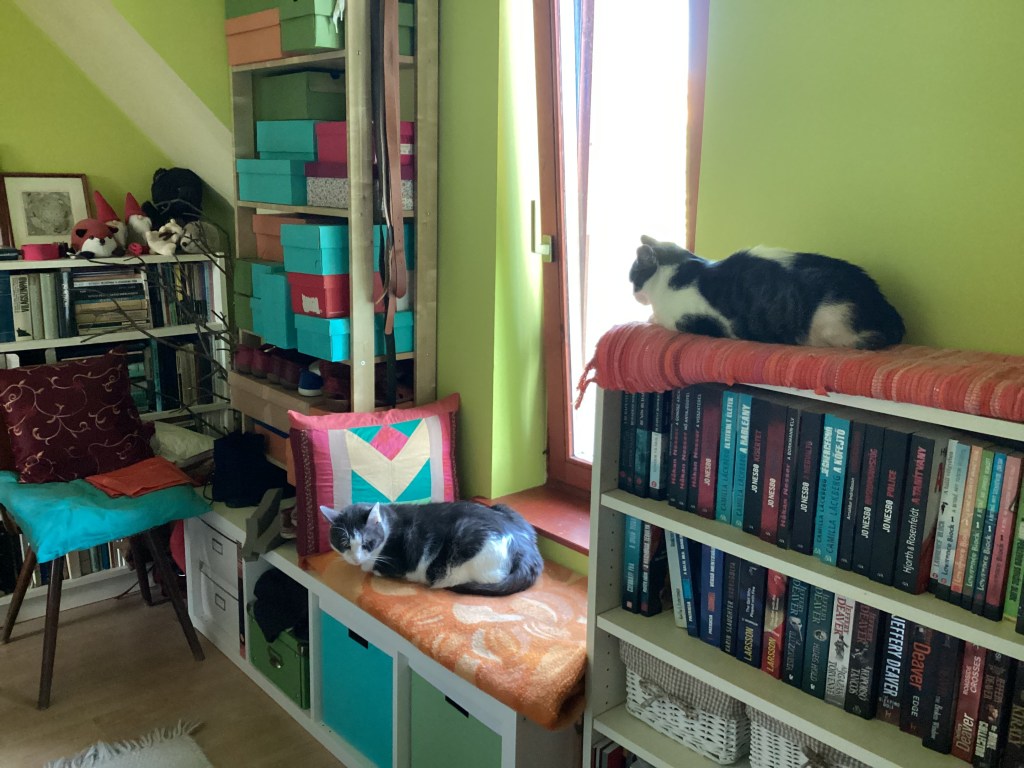 Így lett ebből a napból Alice-féle körbecsukó a városban, és mikor hazavonszoltam magam az összes cuccommal (hoztam némi tartalék szaftos izét a DM-ből a macskáknak végveszély esetére, ha továbbra sem szeretnének majd engem a Gépben Lakozó Szellemek, meg ha már lent voltam, elmásztam cipzárokért és alsó spulnikért Eriknek), a macskák kitörő lelkesedéssel fogadtak.