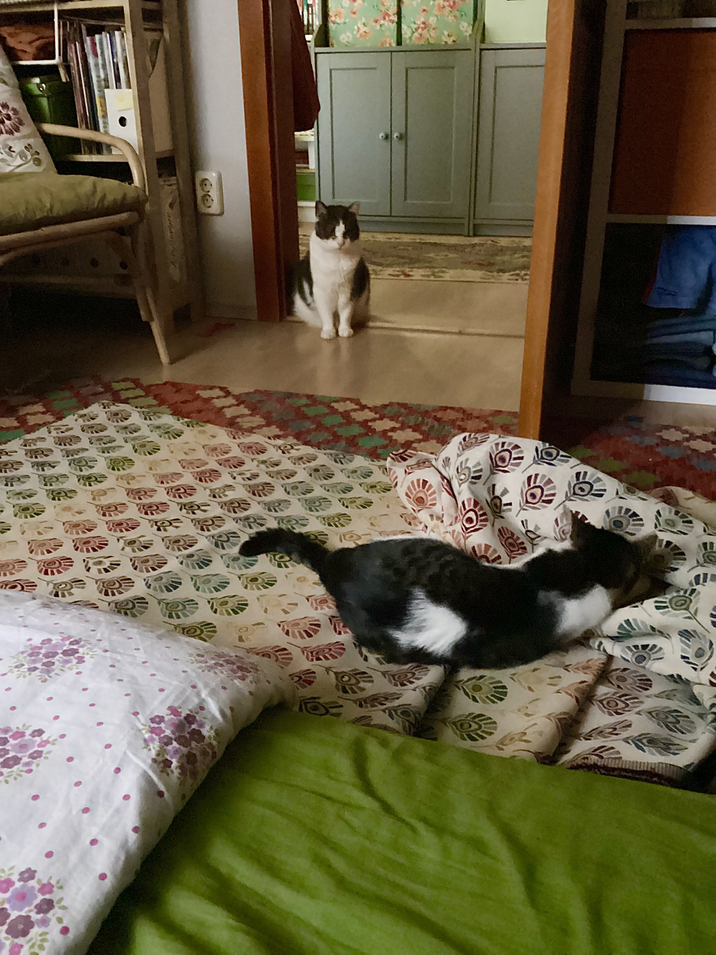 de persze ezek a csodálatos állatok mindig megtalálják, hol tudnak leginkább láb alatt lenni, és ezúttal még attól se nagyon tojtak be, amikor elővettem a porszívót.