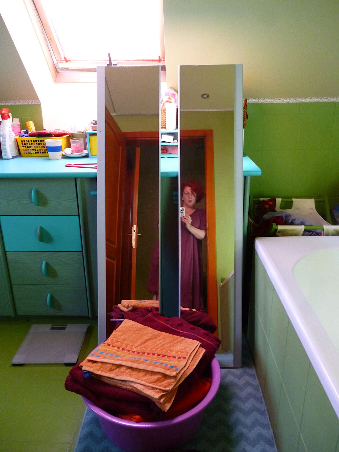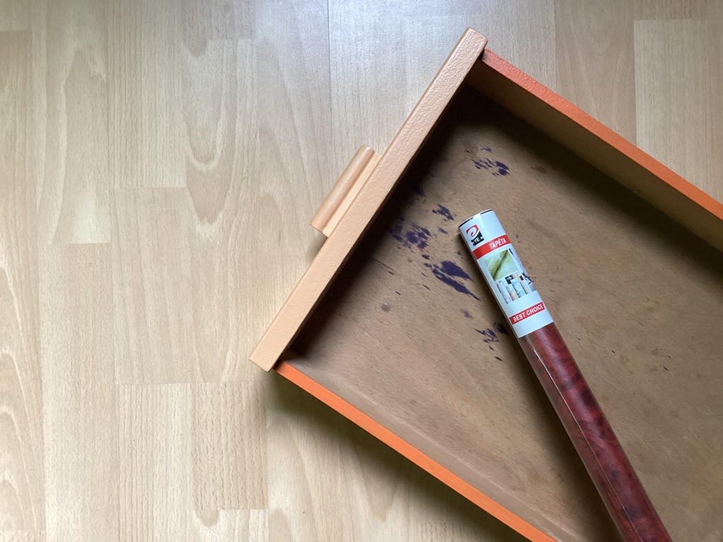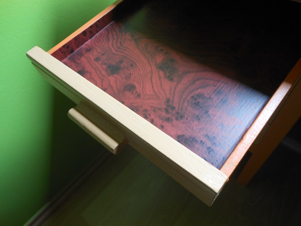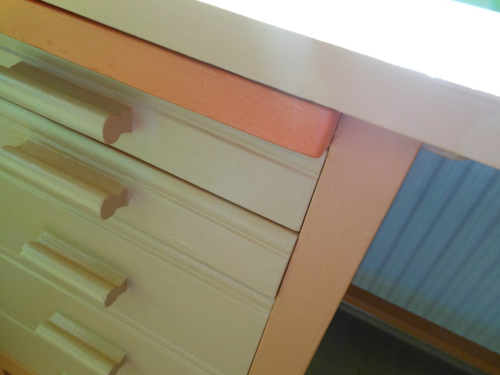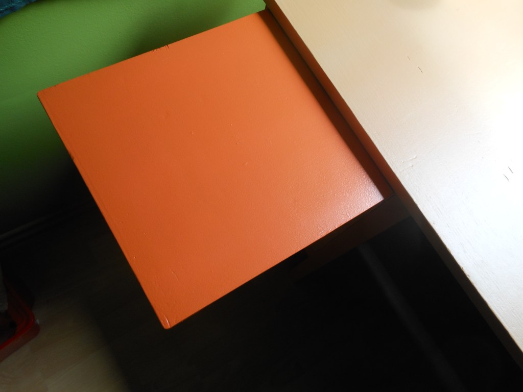 Úgyhogy lekentem erre a barackosbézsre az asztallapot és a fiókokat, narancsszínűre a kihúzható kis írólapot,