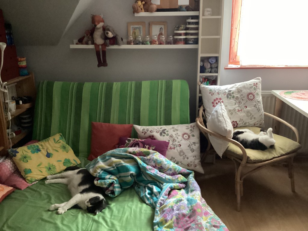 Eredetileg se akartam további festékeket venni, de mikor bementem maszkolószalagért a Mogorvákhoz, merő kíváncsiságból megnéztem, mennyibe fáj mostanság az Unitop – hát, gyerekek, én itt addig fogom kevergetni a házban lévő készletet, amíg az utolsó körömcseppig el nem fogy. Rohadt infláció.