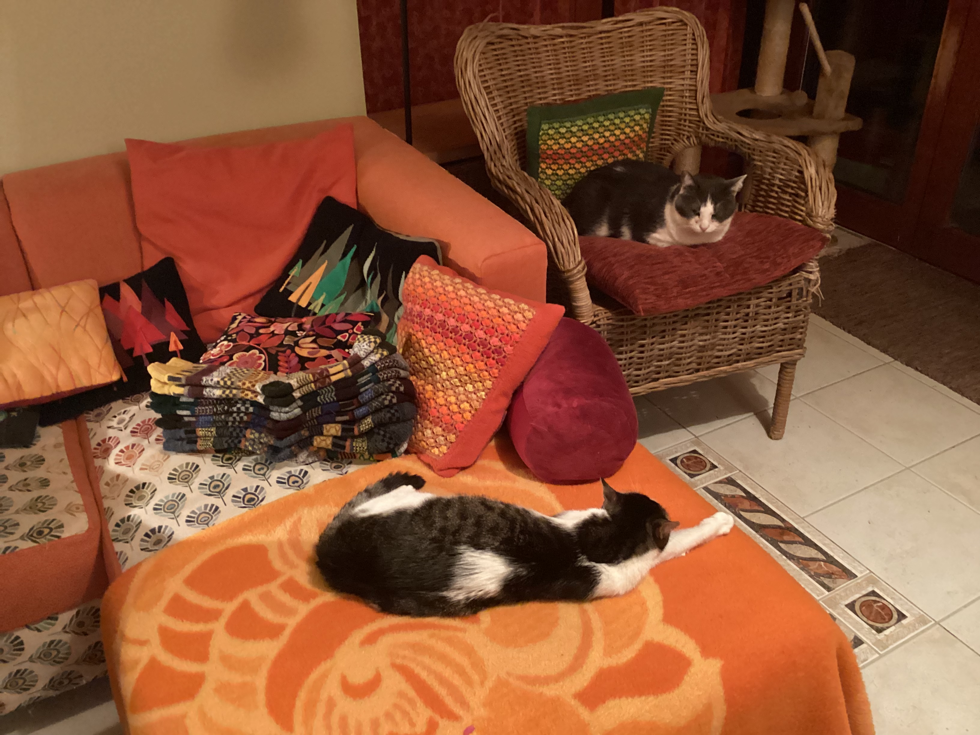 Oké, néha áthelyezkedtek más pozícióba. És mindeközben közelharcokat vívtunk a pokrócért, mert ők is tudják, mi a jó. Egyik legjobb szövetbolti döntésem volt, amikor talán öt vagy hat évvel ezelőtt engedtem az impulzusvásárlás csábításának, és kikértem négy méter wellsoftot Szilvitől, a legfelső polcról azt a rókásat, kösziszépen. Mielőtt bementem, még fogalmam sem volt, hogy nekem kéne bármi ilyesmi, de az ott egy bűnbeviteli központ, na. (Mondanom se kell, ezt sem azért linkelem be, mert fizetnének nekem a reklámért.)