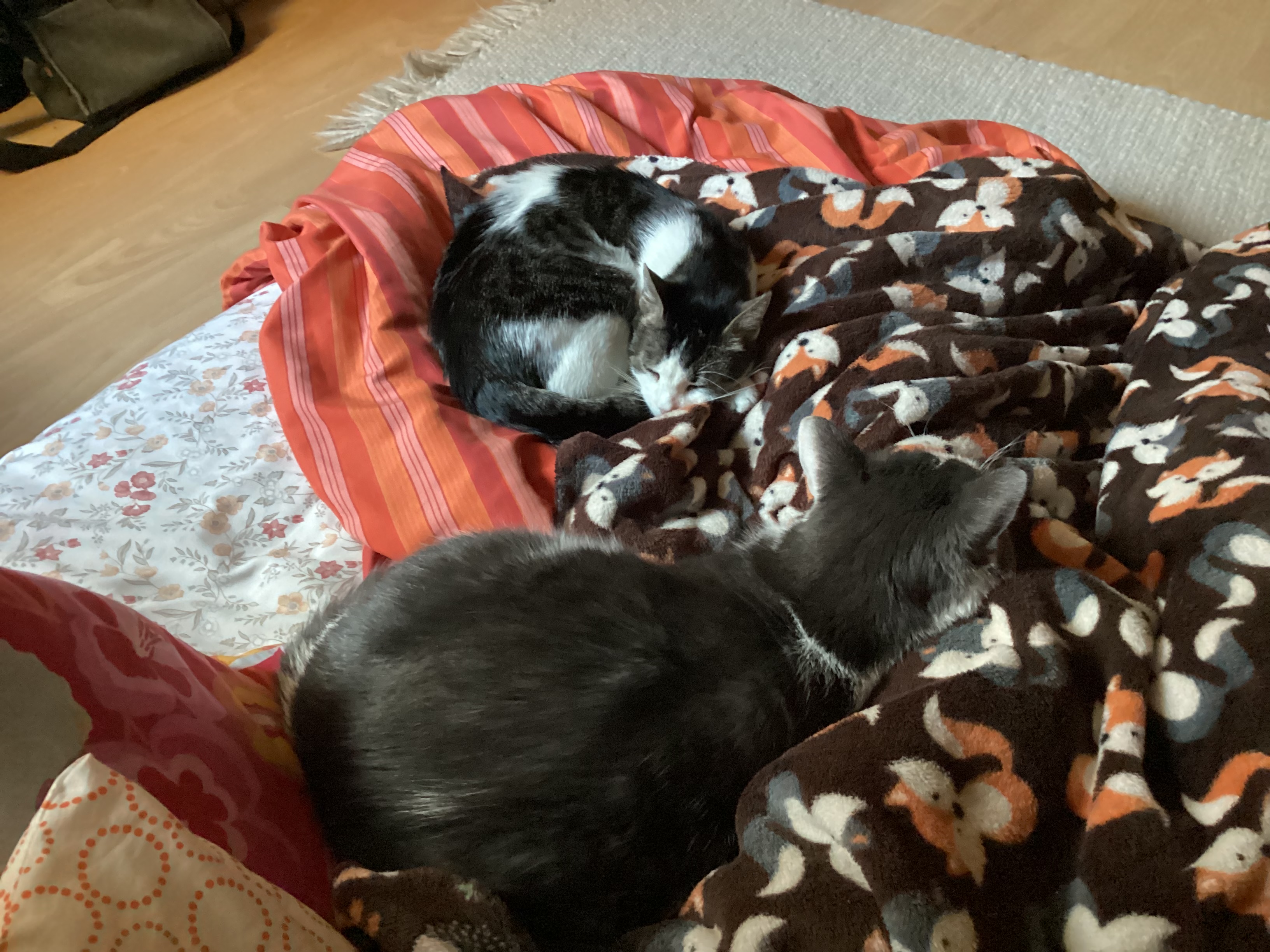 Oké, néha áthelyezkedtek más pozícióba. És mindeközben közelharcokat vívtunk a pokrócért, mert ők is tudják, mi a jó. Egyik legjobb szövetbolti döntésem volt, amikor talán öt vagy hat évvel ezelőtt engedtem az impulzusvásárlás csábításának, és kikértem négy méter wellsoftot Szilvitől, a legfelső polcról azt a rókásat, kösziszépen. Mielőtt bementem, még fogalmam sem volt, hogy nekem kéne bármi ilyesmi, de az ott egy bűnbeviteli központ, na. (Mondanom se kell, ezt sem azért linkelem be, mert fizetnének nekem a reklámért.)