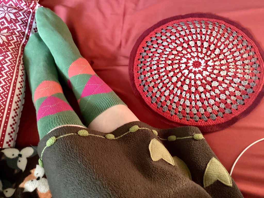 Na de ez csak azért jutott eszembe, mert tegnap merő outrecuidance-ból addig virgonckodtam, hogy ma szarabbul vagyok, mint tegnapelőtt. Ez persze nem nagy ügy, továbbra is csak azt jelenti, hogy bamba vagyok meg álmoskás, és sok a torkomban a zöld létforma, valamint a tárgyak kipotyognak a kezemből. Ennélfogva ma nem bütykölöm tovább ezt a párnahuzatot sem,