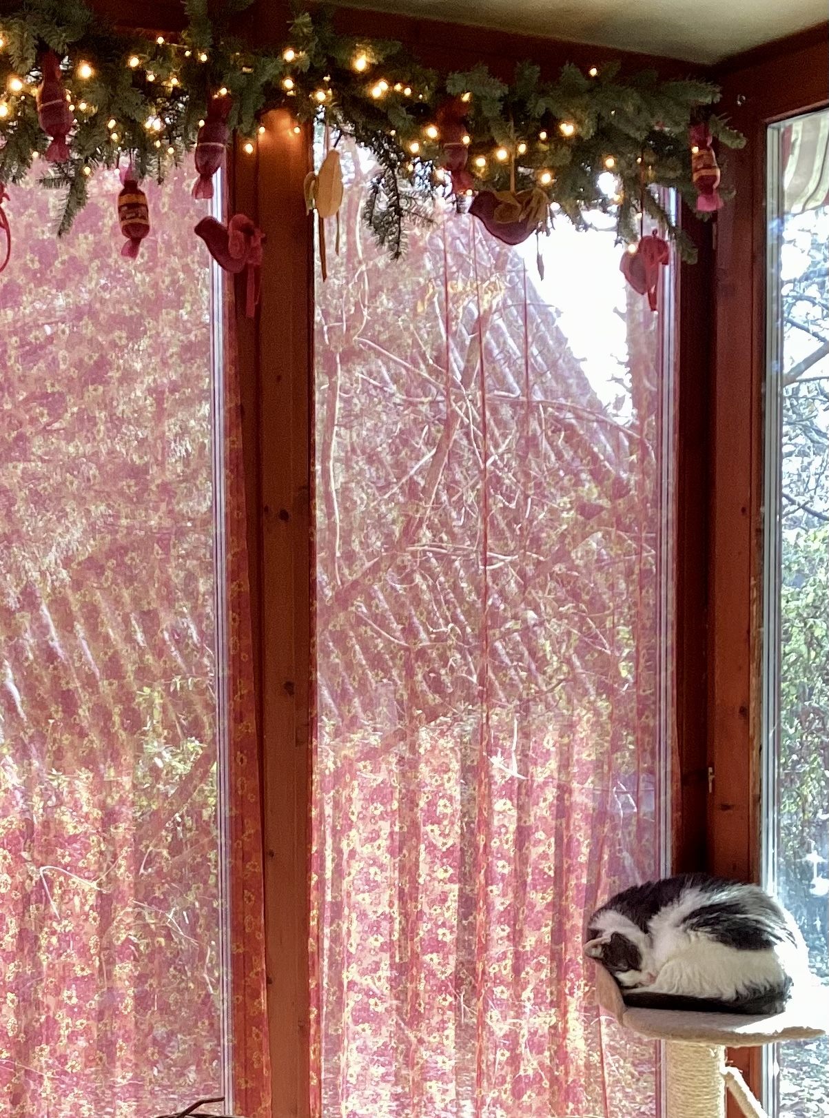 Vízkereszt tiszteletére le kéne bontani a vízszintes karácsonyfánkat, de van egy aprócska akadálya, olyan hétkilós. Ott alszik alatta.