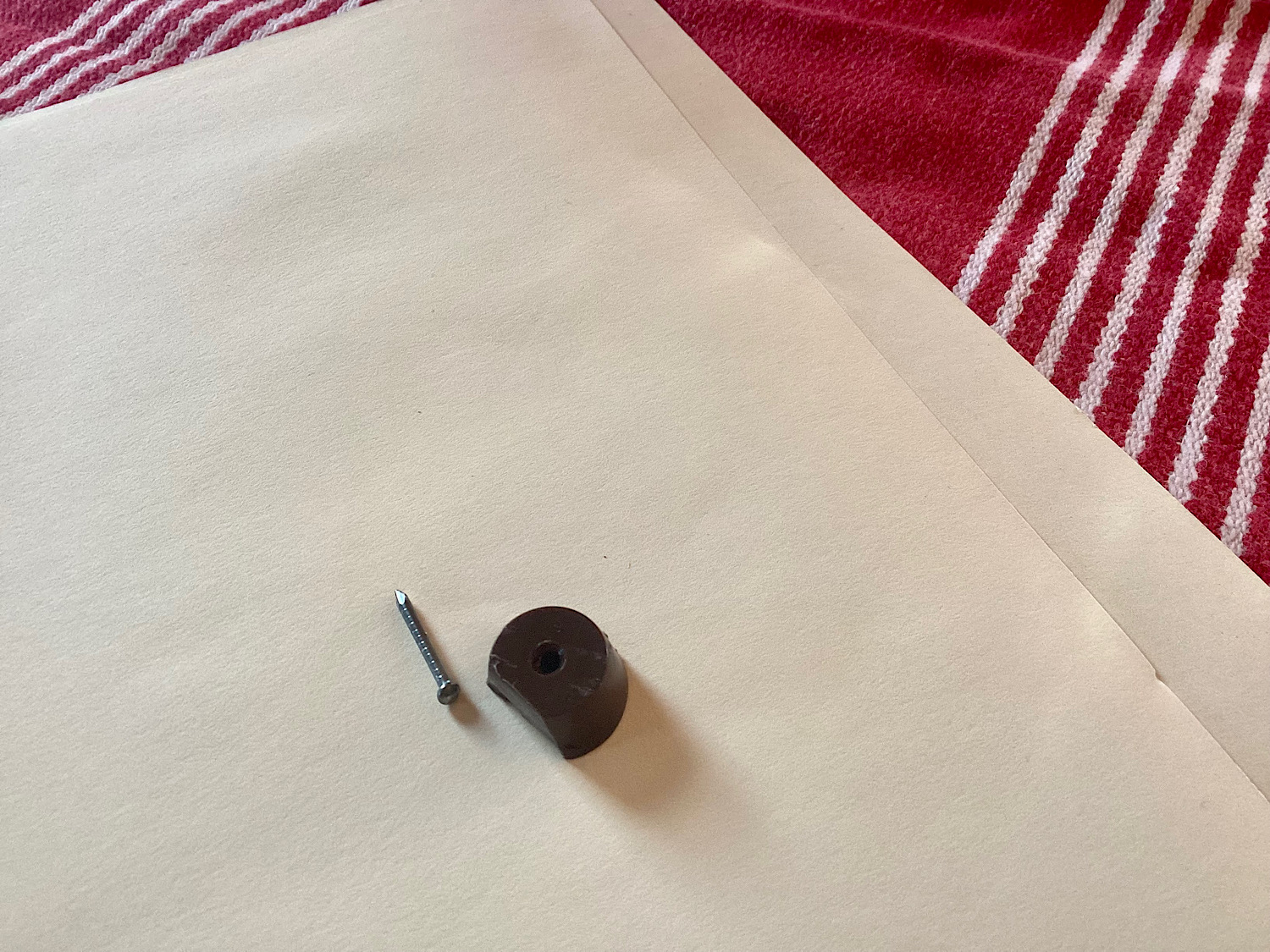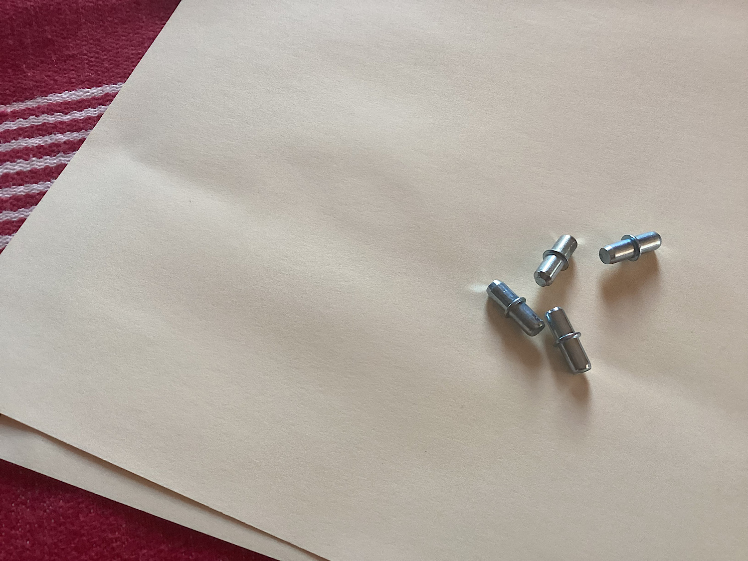 Ez az egyetlen maradt meg a négy közül, ami eredetileg tartotta a polcot. Kettőt valószínűleg a Falak Szelleme evett meg, mert azokat nem találtam meg még (bár sohase mondd, hogy sohase), a harmadikat viszont a komód alól söpörtem ki a múltkorában, és nem értettem, ki ez, mi ez, és mit akar, de különösképpen mit keres nálunk. Nos, a polcból szökött meg. Elnézve a konstrukció légies finomságát (=egy alaposabb macskafing is kilőtte volna a polcból) nem az a csoda, hogy leszakadt a polc, hanem az, hogy húsz évig bírta.