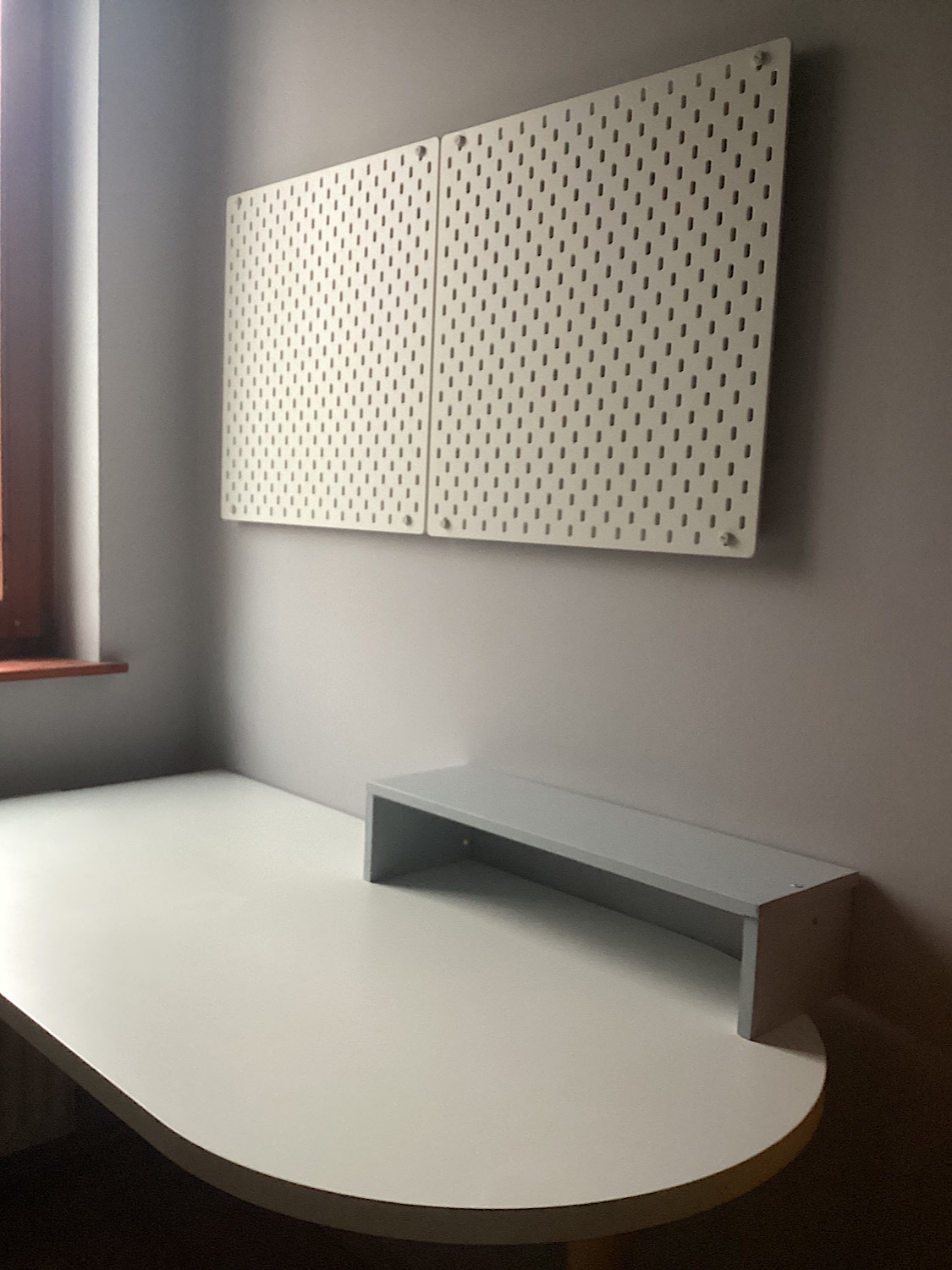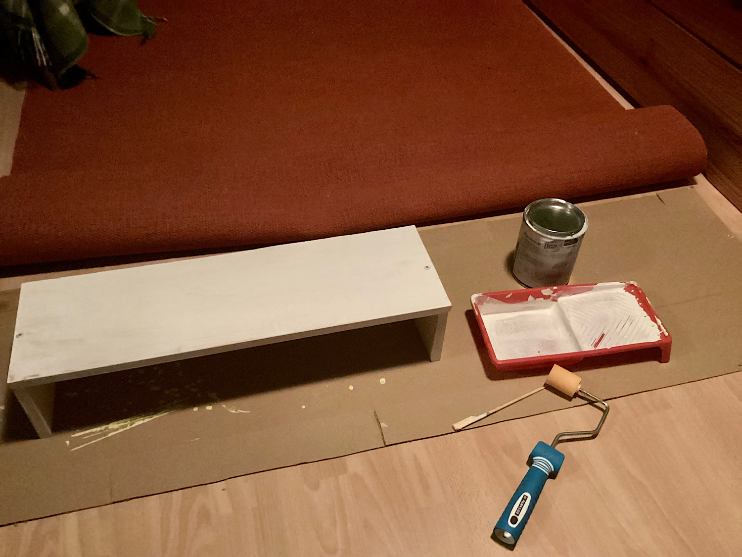 Miután megszárada mind a két réteg festés, fél órával ezelőtt végre behurcoltam a polcocskámat a Bűnök Barlangjába, odaraktam az előre eltervezett helyre,